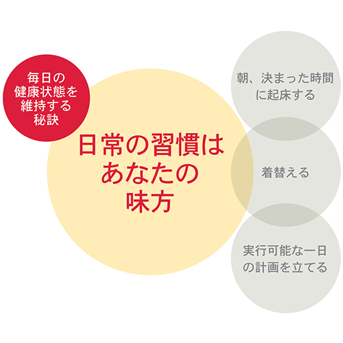 とにかく、日常の習慣を確立することが、毎日の健康状態を維持する秘訣です。 これには、適切な時間の起床、着替え、適切な食事、適度な運動、実行可能な一日の計画などが含まれます。