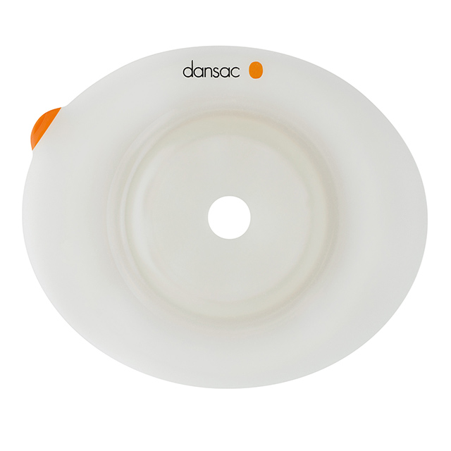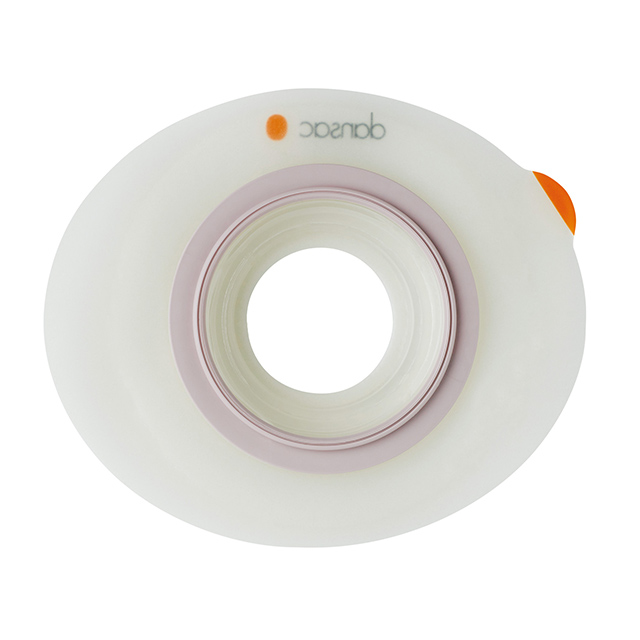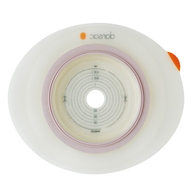 - フランジと皮膚保護剤の間に指が入る浮動型フランジを採用して腹部への圧迫を軽減。 ストーマ袋を容易に装着できます